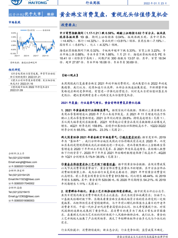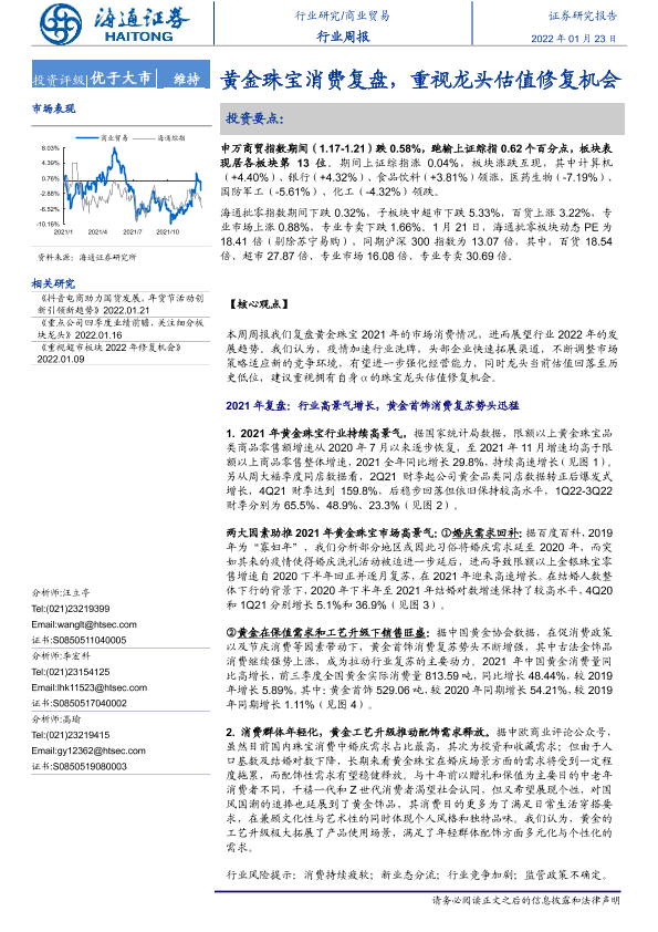 【海通证券】【20220123】商业贸易行业周报:黄金珠宝消费复盘,重视龙头估值修复机会-9页