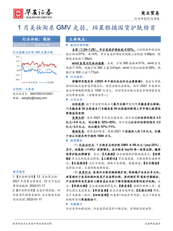 【华安证券】【20220206】1月美妆淘系GMV走弱,珀莱雅摘国货护肤榜首-16页