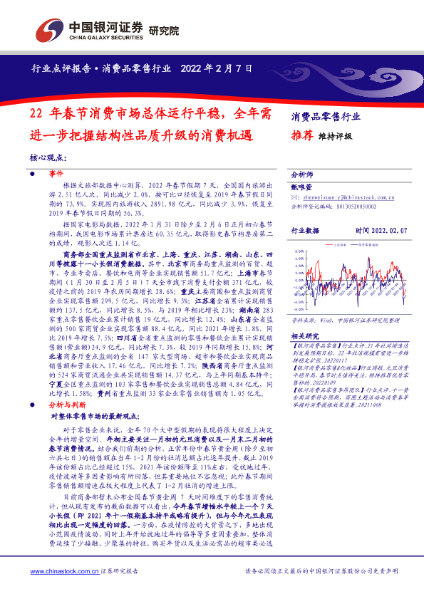 【银河证券】【20220207】22年春节消费市场总体运行平稳,全年需进一步把握结构性品质升级的消费机遇-4页