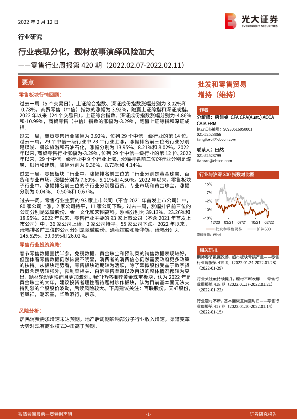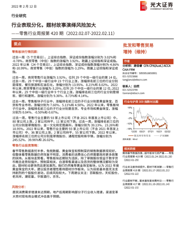 【光大证券】【20220212】零售行业周报第420期:行业表现分化,题材故事演绎风险加大-8页