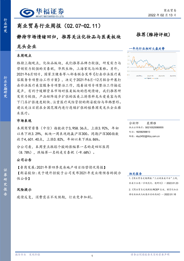 【华福证券】【20220213】商业贸易行业周报:静待市场情绪回归,推荐关注化妆品与医美板块龙头企业-6页