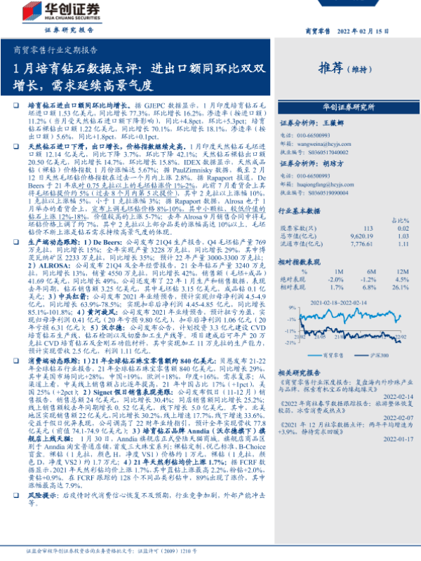 【华创证券】【20220215】1月培育钻石数据点评:进出口额同环比双双增长,需求延续高景气度-8页
