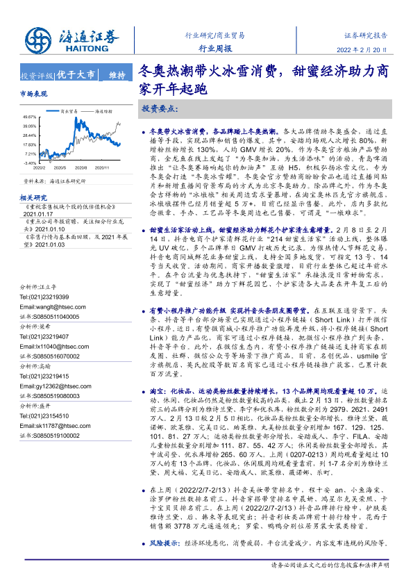 【海通证券】【20220220】商业贸易行业周报:冬奥热潮带火冰雪消费,甜蜜经济助力商家开年起跑-10页
