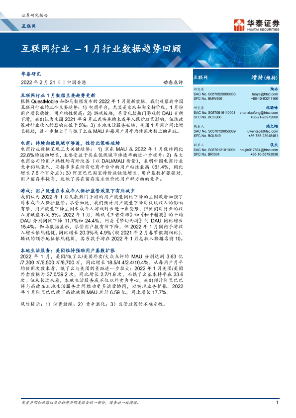 【华泰证券】【20220221】互联网行业 - 1月行业数据趋势回顾-9页