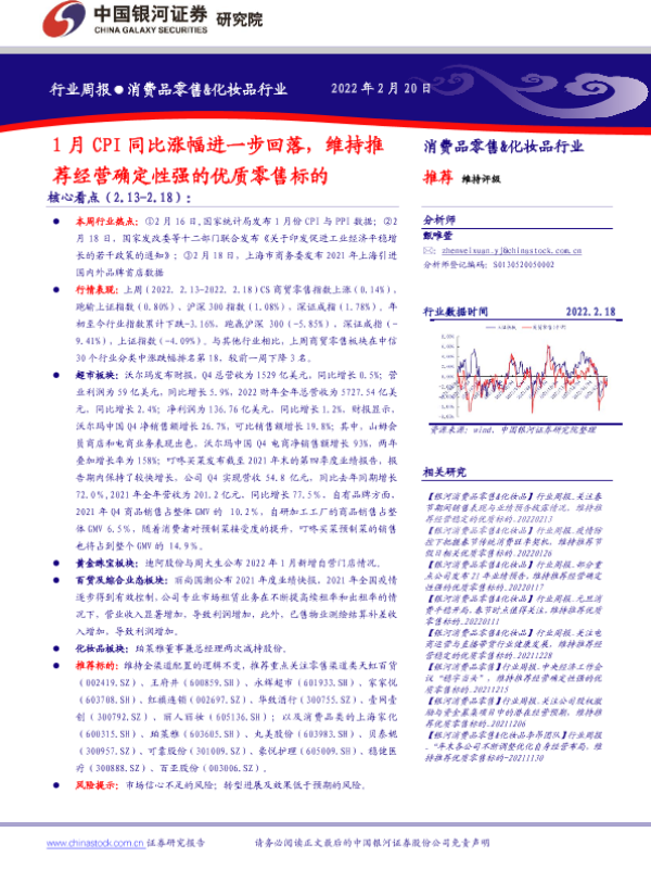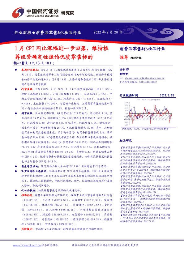 【银河证券】【20220220】1月CPI同比涨幅进一步回落,维持推荐经营确定性强的优质零售标的-29页