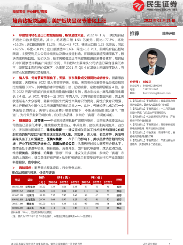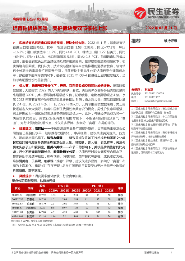 【民生证券】【20220221】商贸零售行业研究周报:培育钻板块回暖,美护板块受双节催化上涨-20页
