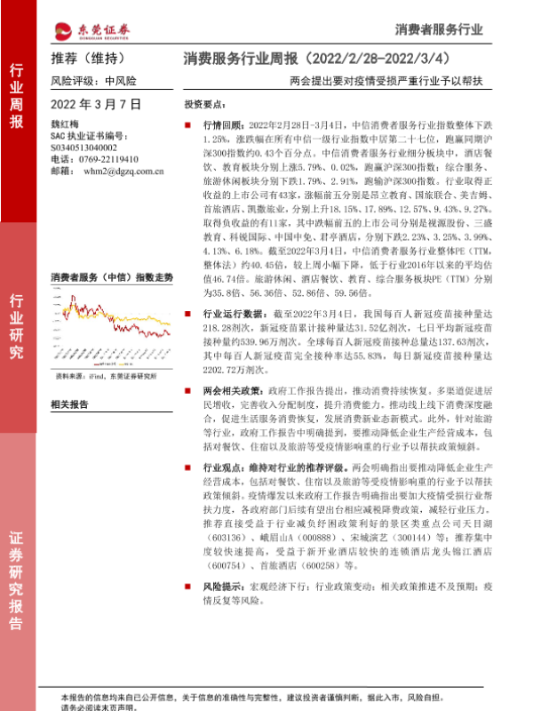 【东莞证券】【20220307】消费服务行业周报:两会提出要对疫情受损严重行业予以帮扶-10页