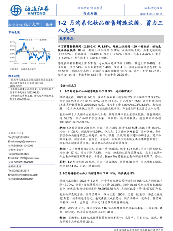 【海通证券】【20220306】1-2月淘系化妆品销售增速放缓,蓄力三八大促-7页