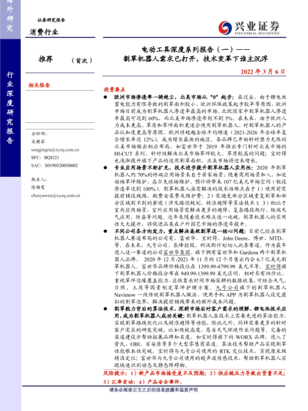 【兴业证券】【20220306】电动工具深度系列报告(一)—— 割草机器人需求已打开,技术变革下谁主沉浮-26页