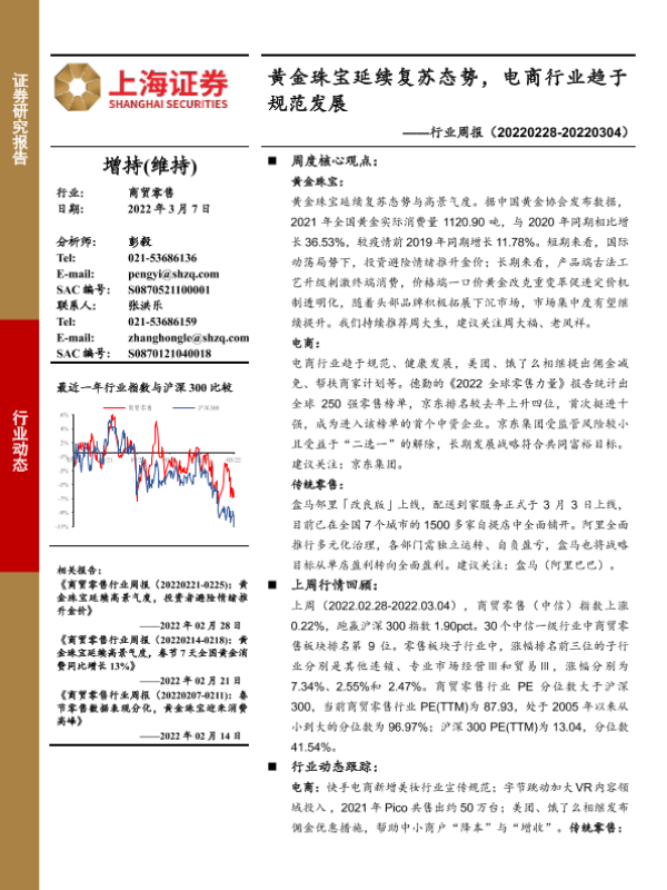 【上海证券】【20220307】商贸零售行业周报:黄金珠宝延续复苏态势,电商行业趋于规范发展-11页