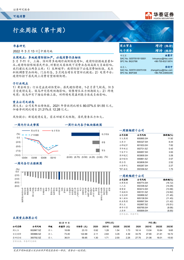 【华泰证券】【20220313】商业贸易行业周报(第十周)-10页