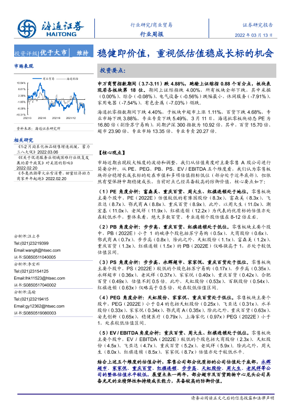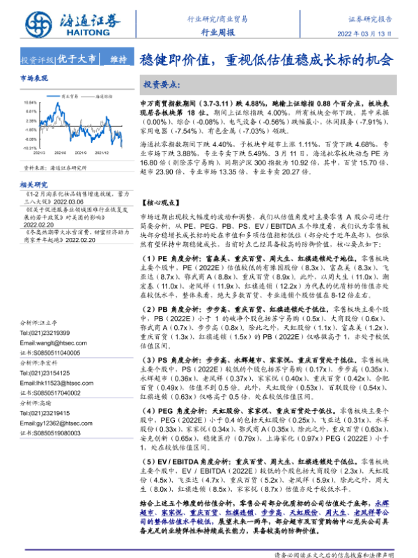 【海通证券】【20220313】商业贸易行业周报:稳健即价值,重视低估值稳成长标的机会-7页
