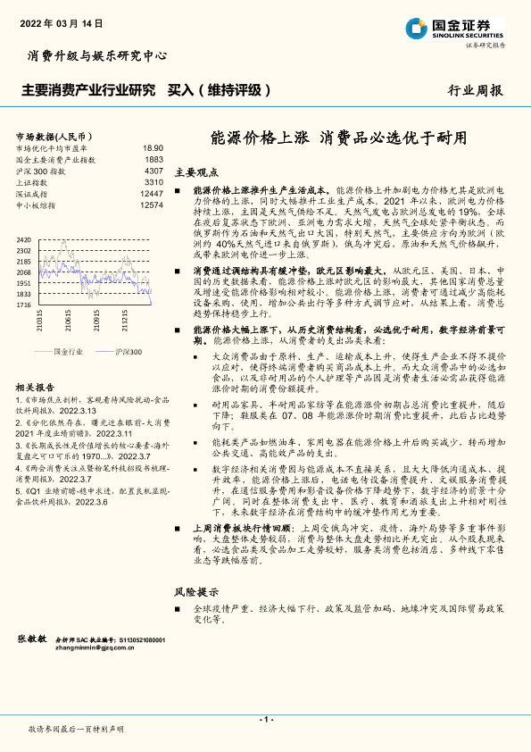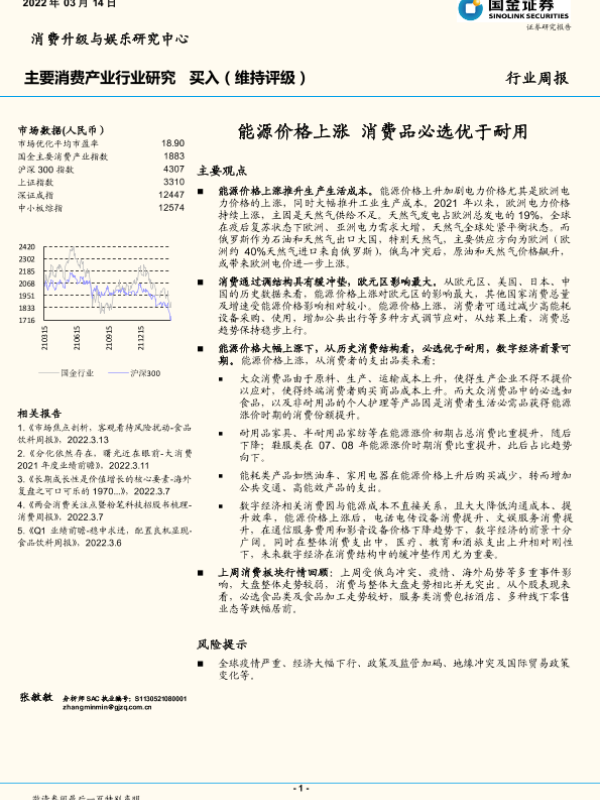 【国金证券】【20220314】主要消费产业行业研究:能源价格上涨 消费品必选优于耐用-10页