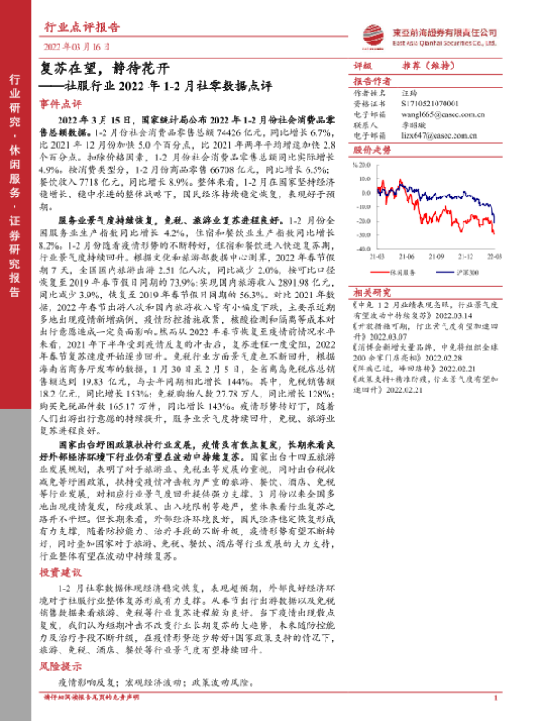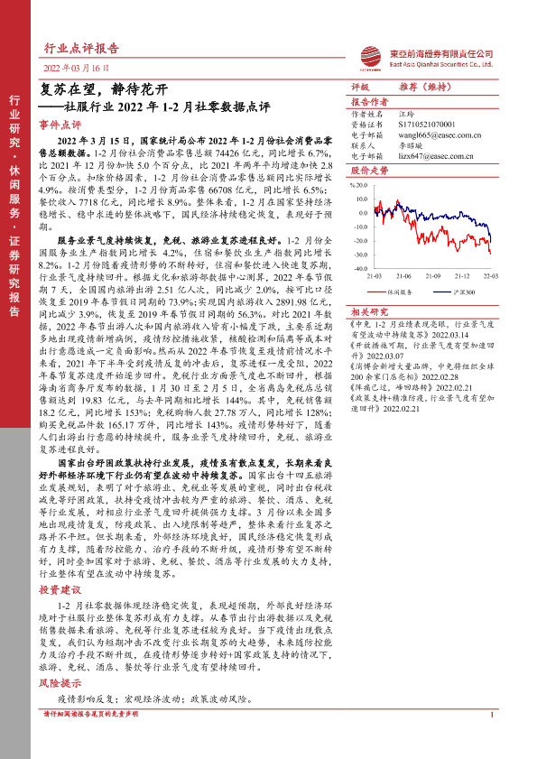 【东亚前海证券】【20220316】社服行业2022年1-2月社零数据点评:复苏在望,静待花开-3页