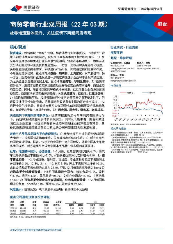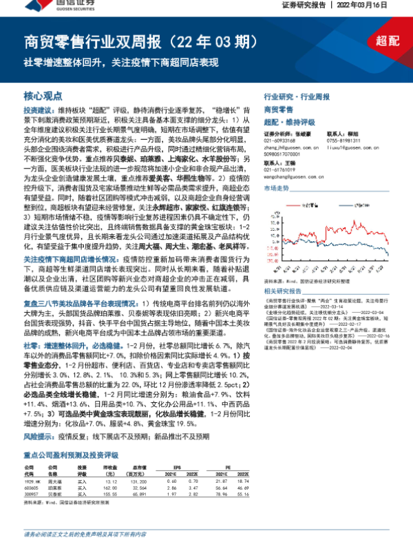 【国信证券】【20220316】商贸零售行业双周报:社零增速整体回升,关注疫情下商超同店表现-11页