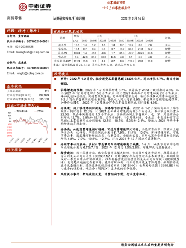 【中泰证券】【20220316】商贸零售1-2月社零数据点评:社零增速回暖-6页