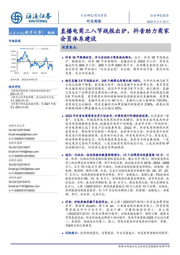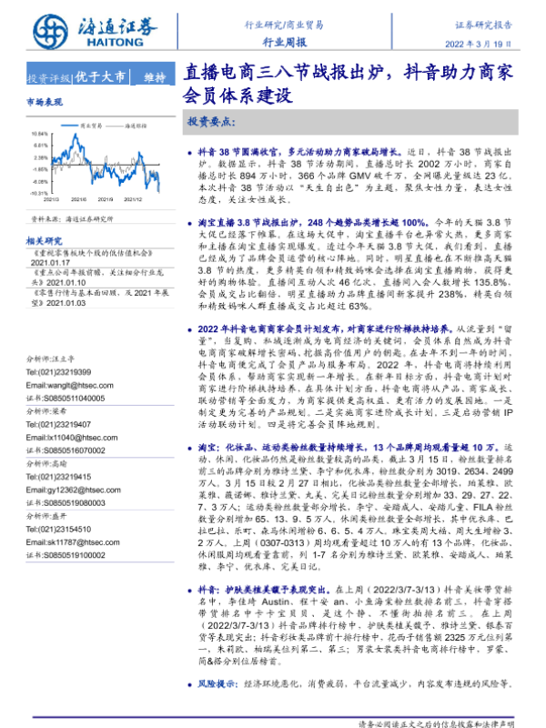 【海通证券】【20220319】商业贸易行业周报:直播电商三八节战报出炉,抖音助力商家会员体系建设-9页