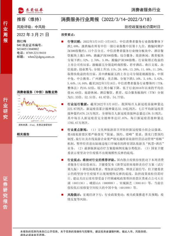 【东莞证券】【20220321】消费服务行业周报:防控政策放松仍需时日-9页