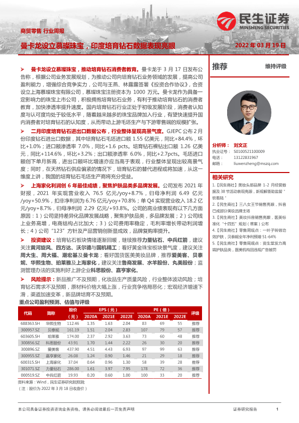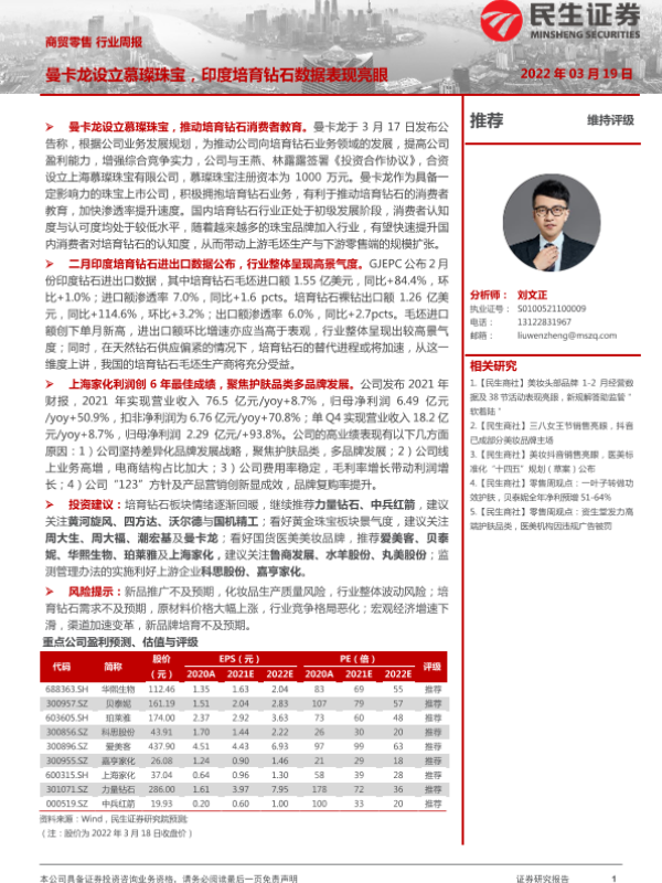 【民生证券】【20220319】商贸零售行业周报:曼卡龙设立慕璨珠宝,印度培育钻石数据表现亮眼-19页