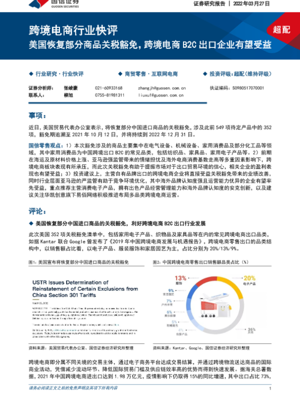 【国信证券】【20220327】跨境电商行业快评:美国恢复部分商品关税豁免,跨境电商B2C出口企业有望受益-5页