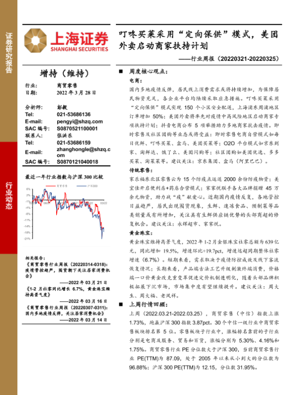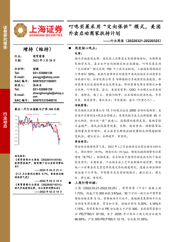 【上海证券】【20220328】商贸零售行业周报:叮咚买菜采用“定向保供”模式,美团外卖启动商家扶持计划-15页