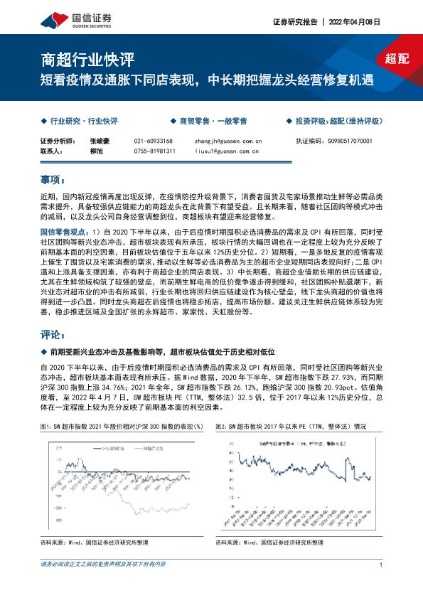 【国信证券】【20220408】商超行业快评:短看疫情及通胀下同店表现,中长期把握龙头经营修复机遇-6页