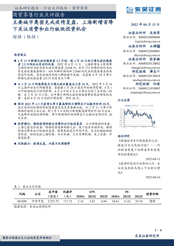 【东吴证券】【20220413】商贸零售行业点评报告:主要城市奥密克戎疫情复盘,上海新增首降下关注消费和出行板块投资机会-6页