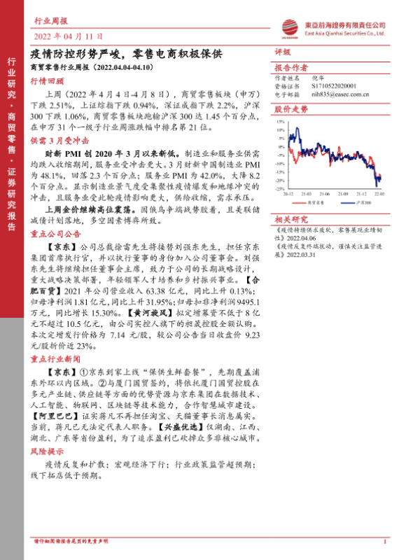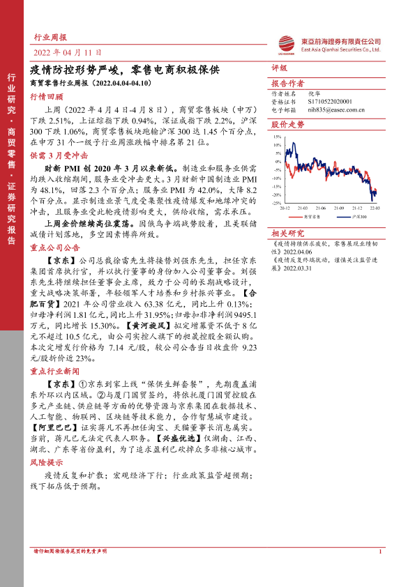 【东亚前海证券】【20220411】商贸零售行业周报:疫情防控形势严峻,零售电商积极保供-13页