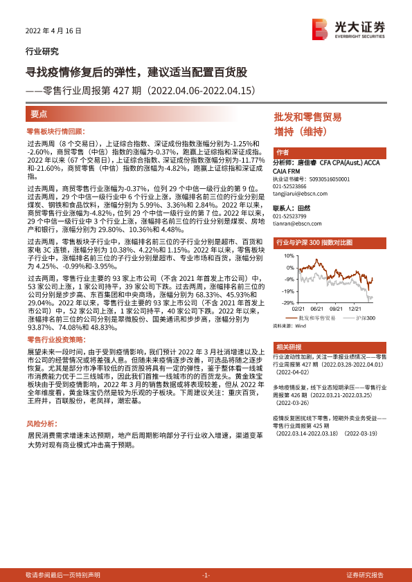 【光大证券】【20220416】零售行业周报第427期:寻找疫情修复后的弹性,建议适当配置百货股-8页