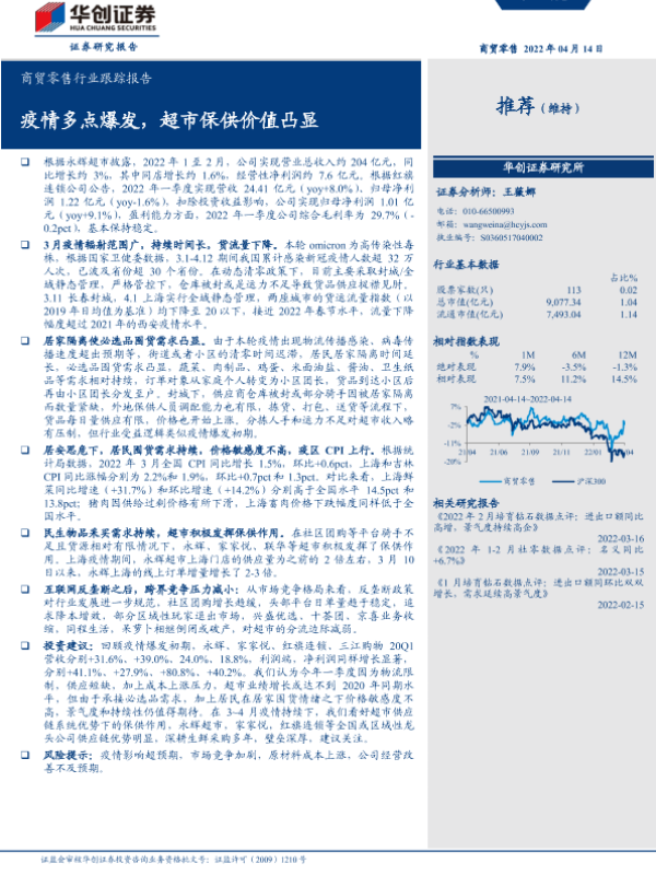【华创证券】【20220414】商贸零售行业跟踪报告:疫情多点爆发,超市保供价值凸显-10页