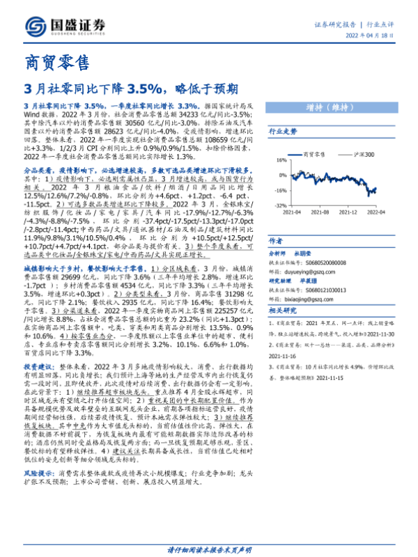 【国盛证券】【20220418】3月社零同比下降3.5%,略低于预期-6页