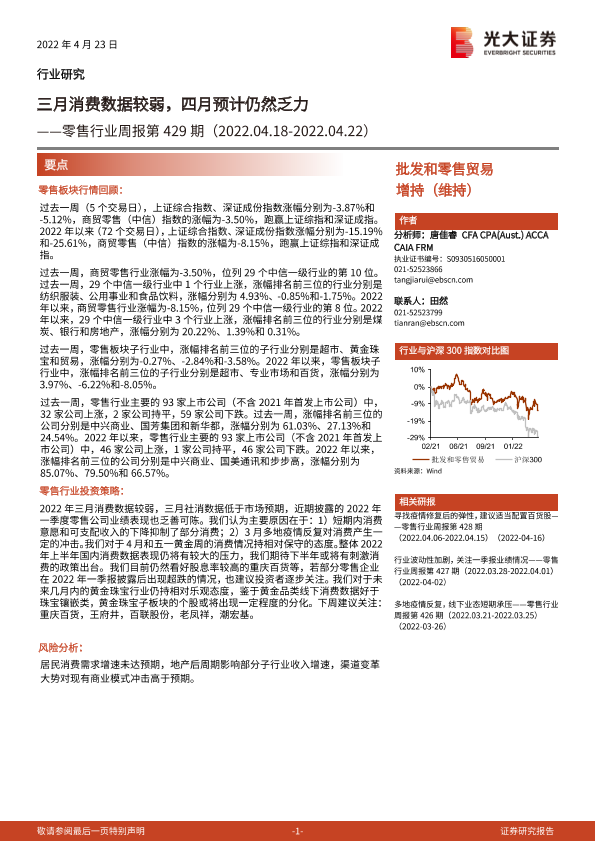 【光大证券】【20220423】三月消费数据较弱,四月预计仍然乏力-9页