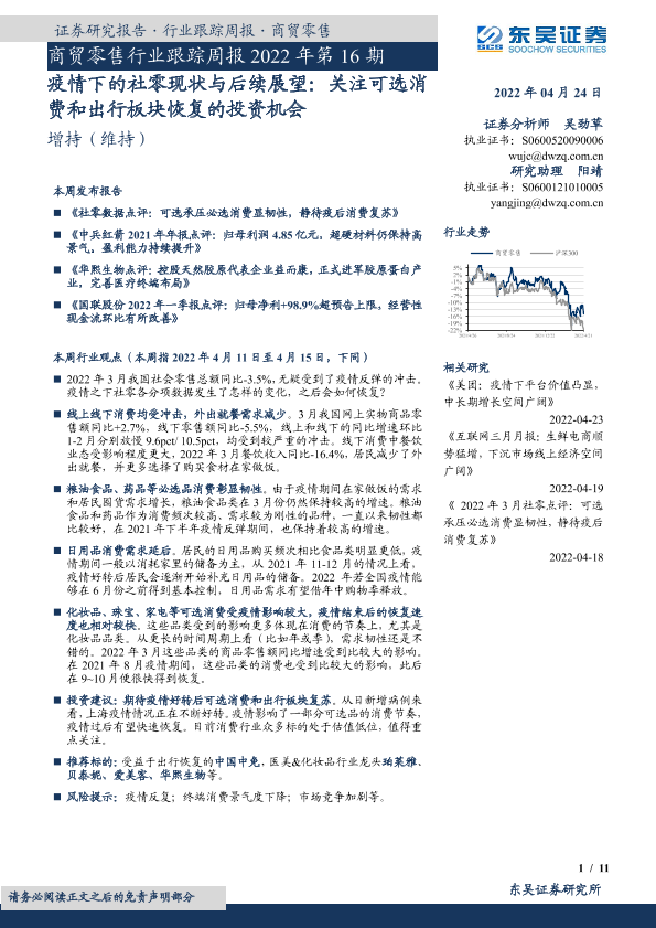 【东吴证券】【20220424】疫情下的社零现状与后续展望:关注可选消费和出行板块恢复的投资机会-11页