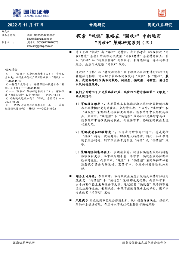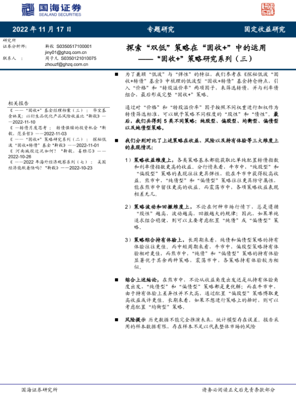 【国海证券】【20221117】探索“双低”策略在“固收+”中的运用-20页