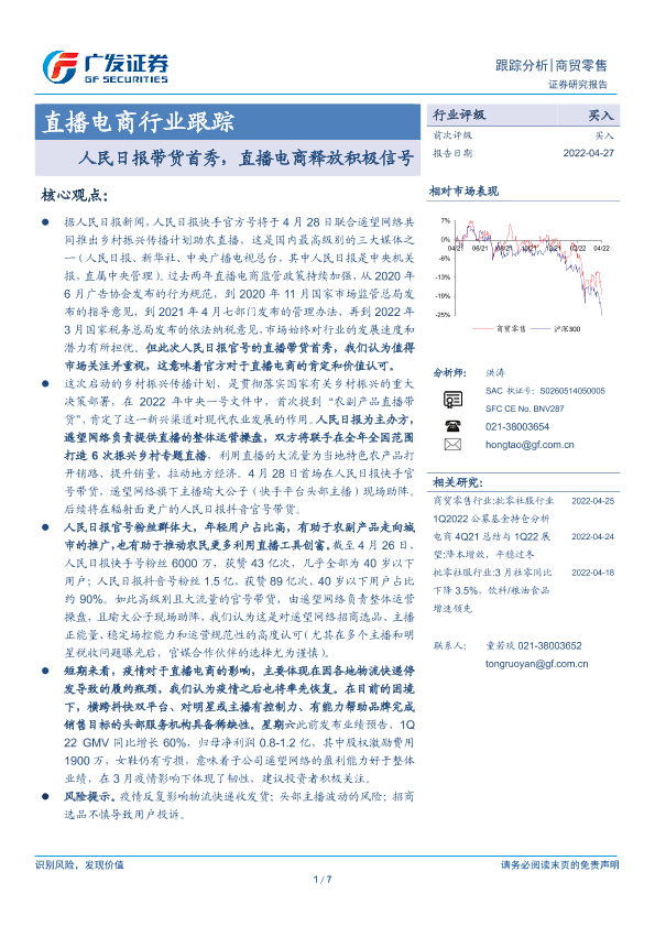 【广发证券】【20220427】直播电商行业跟踪:人民日报带货首秀,直播电商释放积极信号-7页