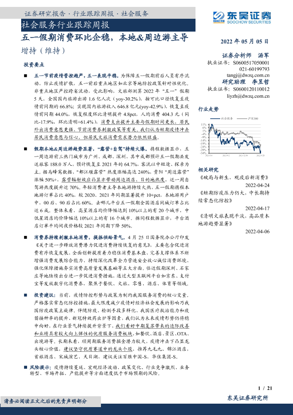 【东吴证券】【20220505】五一假期消费环比企稳,本地&周边游主导-21页