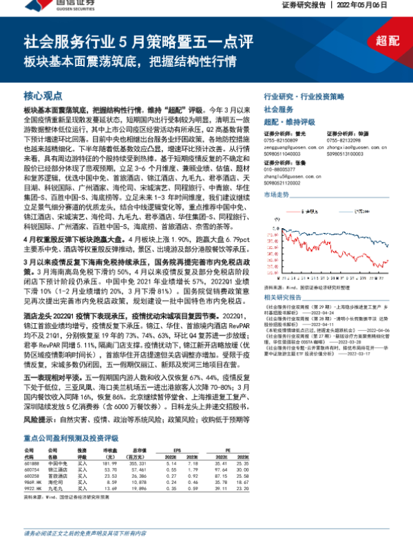 【国信证券】【20220506】社会服务行业5月策略暨五一点评:板块基本面震荡筑底,把握结构性行情-18页