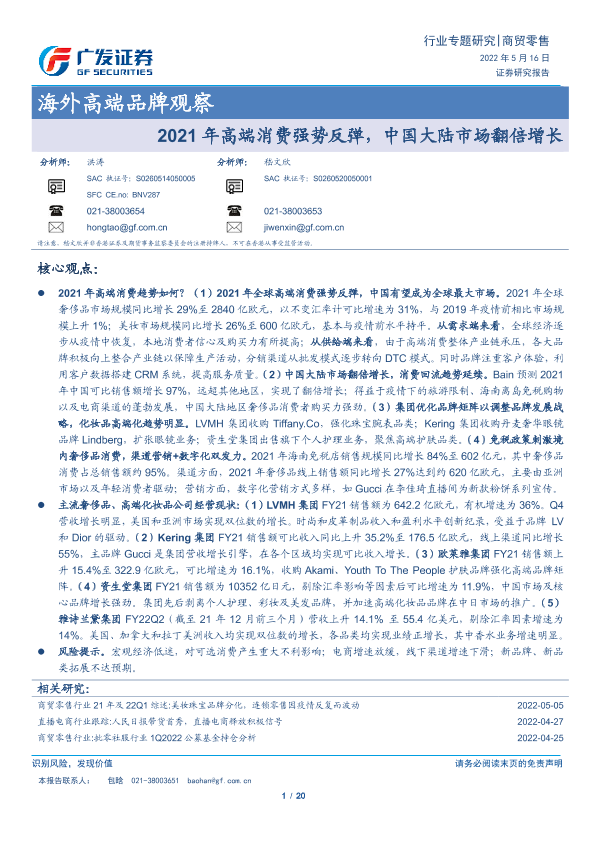 【广发证券】【20220516】商贸零售行业专题研究:海外高端品牌观察-20页