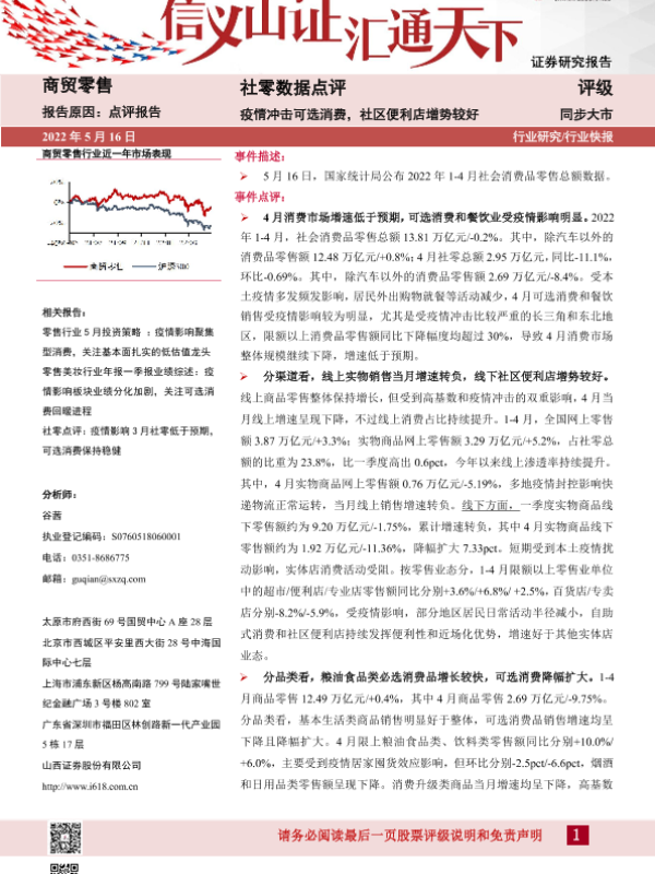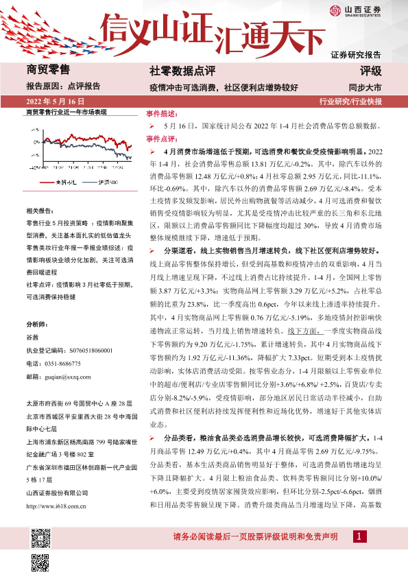 【山西证券】【20220516】社零数据点评:疫情冲击可选消费,社区便利店增势较好-5页