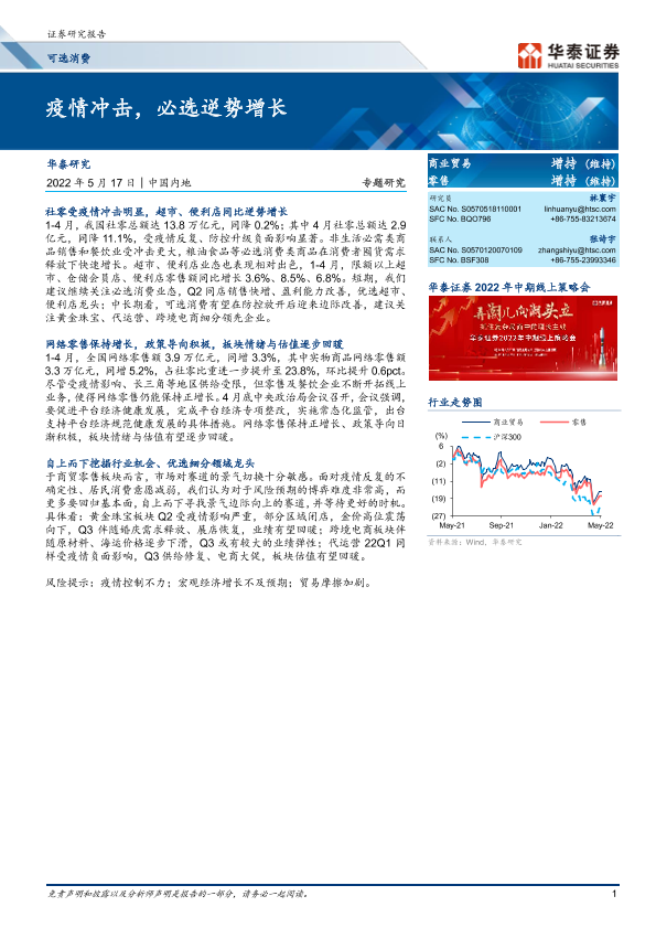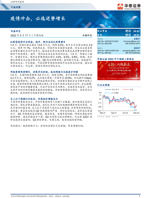 【华泰证券】【20220517】可选消费专题研究:疫情冲击,必选逆势增长-8页