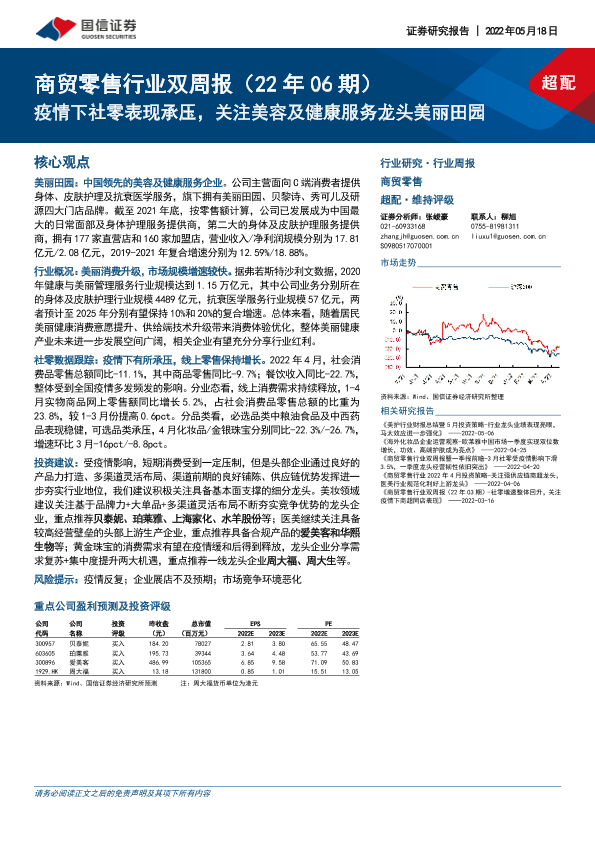 【国信证券】【20220518】商贸零售行业双周报:疫情下社零表现承压,关注美容及健康服务龙头美丽田园-19页