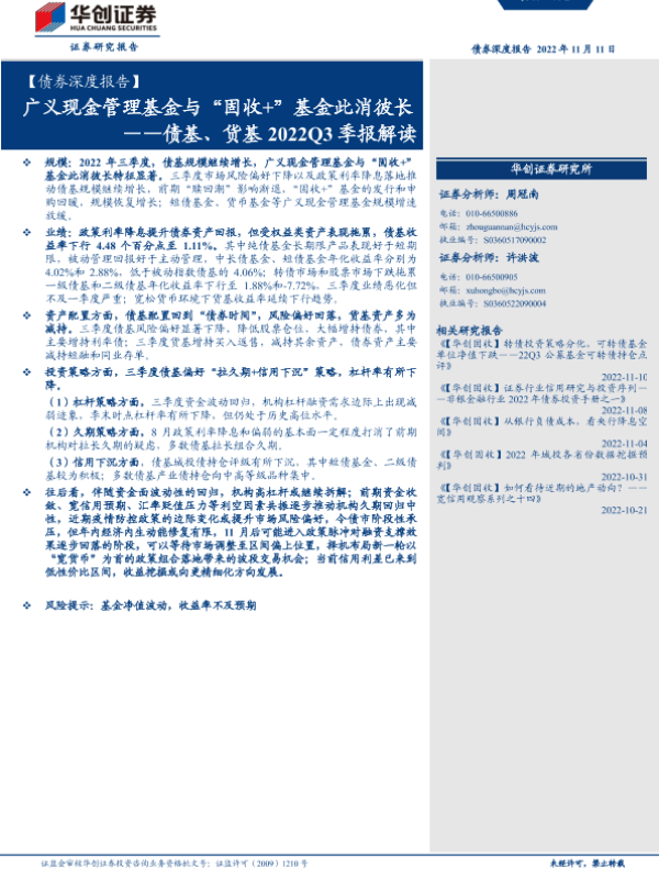 【华创证券】【20221111】债基、货基2022Q3季报解读:广义现金管理基金与“固收+”基金此消彼长-30页