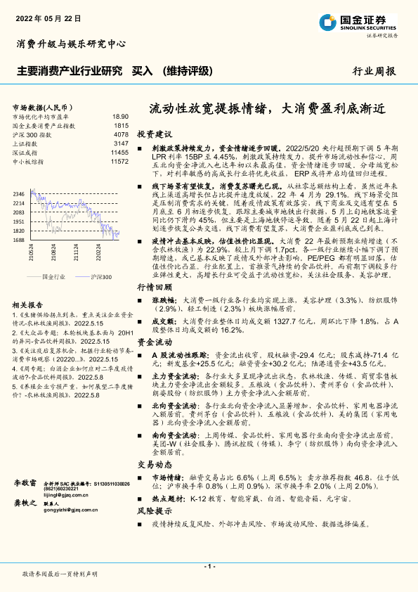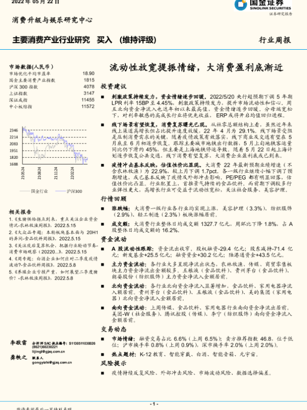 【国金证券】【20220522】主要消费产业行业研究:流动性放宽提振情绪,大消费盈利底渐近-17页