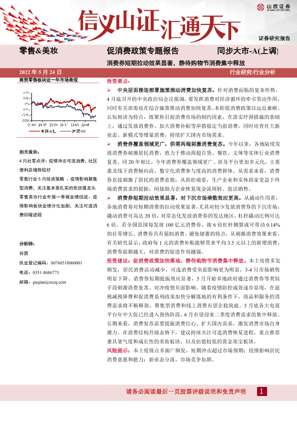 【山西证券】【20220524】零售&美妆促消费政策专题报告:消费券短期拉动效果显著,静待购物节消费集中释放-13页