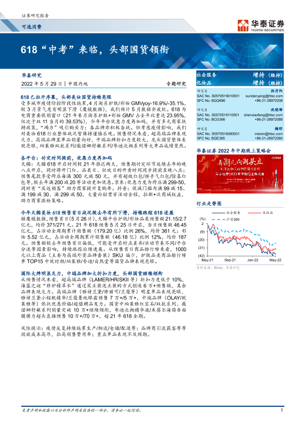 【华泰证券】【20220529】618“中考”来临,头部国货领衔-10页