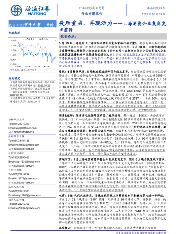 【海通证券】【20220531】疫后重启,再现活力——上海消费企业复商复市前瞻-15页