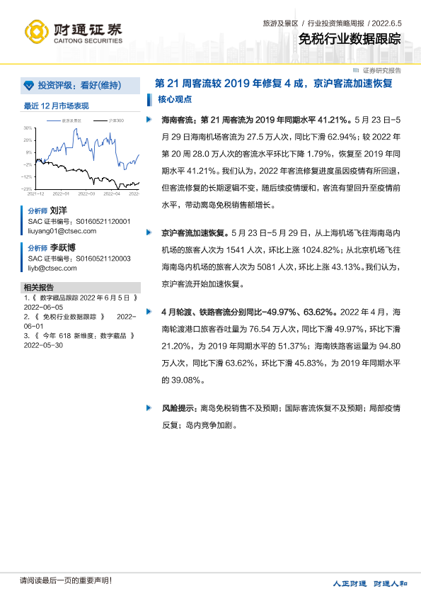 京沪客流 免税行业 客流恢复 海南机场 离岛免税