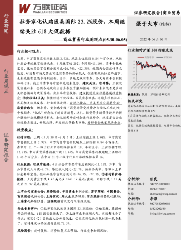 【万联证券】【20220606】拉芳家化认购医美国际23.2%股份,本周继续关注618大促数据-9页