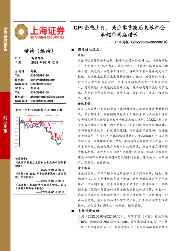 【上海证券】【20220612】商贸零售行业周报:CPI企稳上行,关注零售疫后复苏机会和超市同店增长-12页