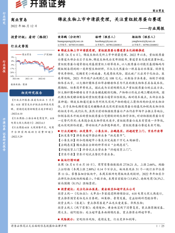 【开源证券】【20220612】商业贸易行业周报:锦波生物上市申请获受理,关注重组胶原蛋白赛道-25页
